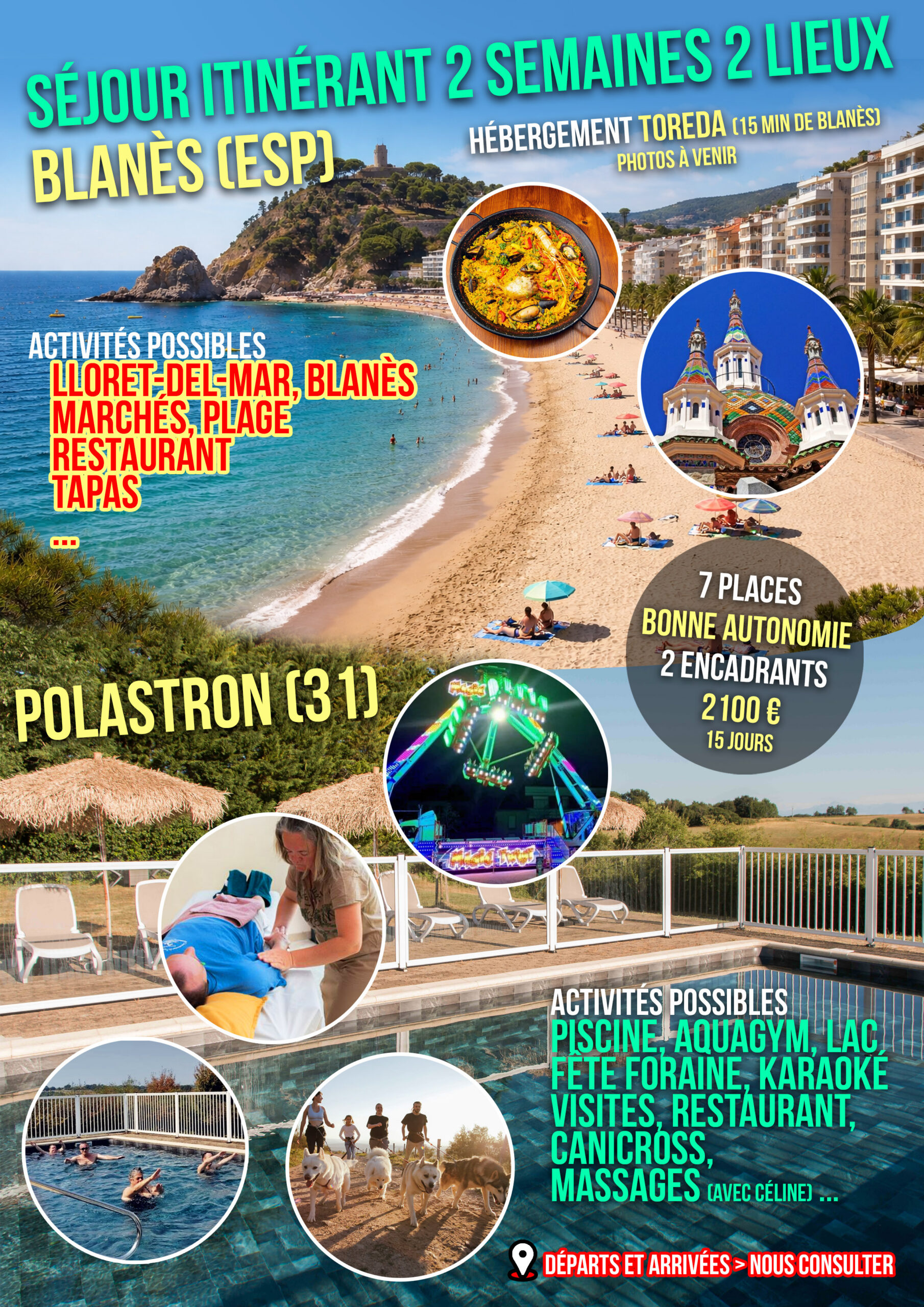 Du sam 1er au sam 15 août, d’abord l’Espagne avec un gîte à proximité de Blanes et ensuite Polastron (31) pour profiter d’activités aquatiques en particulier !